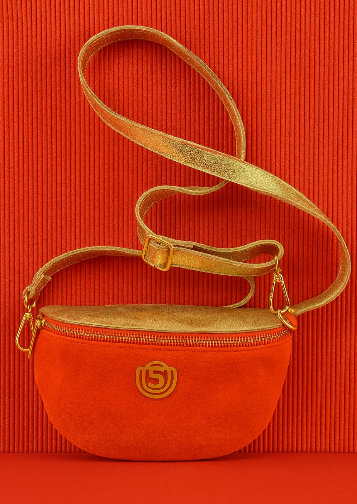 Sac banane cuir et daim logo en métal doré